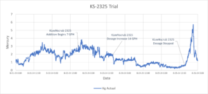 The graph below shows results from a trial feeding KS-1500. Upon completion of the trial, the utility immediately transitioned to a commercial KLeeNscrub customer.